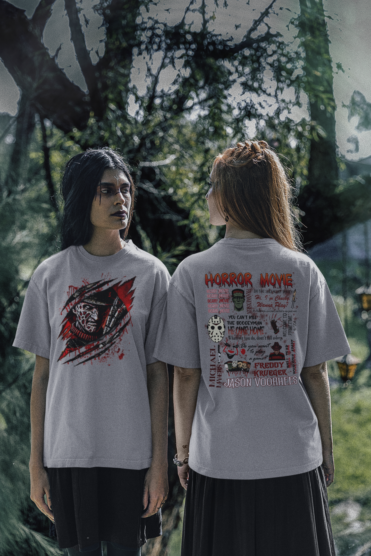 one shirt freddy front print horror movie back print